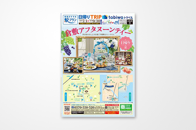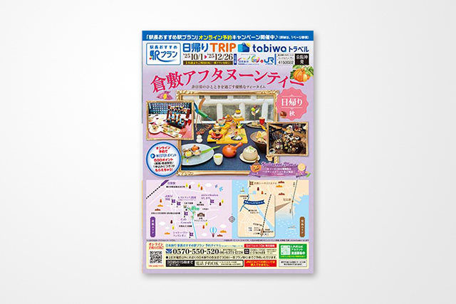 HOME WORKS 駅プラン「倉敷アフタヌーンティー」2025 株式会社JR西日本コミュニケーションズ パンフレット・カタログ/駅プラン「倉敷アフタヌーンティー」2025 《アートディレクション・グラフィックデザイン》 秋 夏 春 WORKS 一覧 POP・ノベルティ WEB イラストレーション チラシ・フライヤー パッケージ パンフレット・カタログ フォト ポスター・看板・サイネージ ロゴタイプ 名刺・カード 雑誌広告 装丁 リーフレット MOVIE クライアント別 HEPナビオ nail atelier i.to きもの やまと ひかりのくに株式会社 オートポットジャパン クリーン・ブラザーズ ケイミュー株式会社 パナソニックサイクルテック株式会社 ミズノ株式会社 交通新聞社 住友ゴムグループ 住友ゴム工業株式会社 保険LICO 双和化学産業株式会社 大倉建設 大朝交通 大淀町商工会 大阪弥生会館 大阪総合デザイン専門学校 学校法人 Adachi学園 学校法人安達学園 寺田倉庫株式会社「 」 Warehouse TERRADA 日信工業株式会社 株式会社JR西日本コミュニケーションズ 株式会社がまかつ 株式会社ドルチェ楽器 株式会社マッグガーデン 株式会社原商会 株式会社木屋 株式会社麦の穂 楽天ヴィッセル神戸株式会社 渡辺パイプ株式会社 社会福祉法人 あすかの会 西川産業株式会社 西日本電信電話株式会社