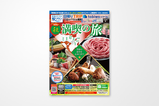 HOME WORKS 駅プラン「満喫の旅」2025年春~秋 株式会社JR西日本コミュニケーションズ パンフレット・カタログ/駅プラン「満喫の旅」2025年春~秋 《アートディレクション・コピーライティング・グラフィックデザイン》 秋 夏 秋 WORKS 一覧 POP・ノベルティ WEB イラストレーション チラシ・フライヤー パッケージ パンフレット・カタログ フォト ポスター・看板・サイネージ ロゴタイプ 名刺・カード 雑誌広告 装丁 リーフレット MOVIE クライアント別 HEPナビオ nail atelier i.to きもの やまと ひかりのくに株式会社 オートポットジャパン クリーン・ブラザーズ ケイミュー株式会社 パナソニックサイクルテック株式会社 ミズノ株式会社 交通新聞社 住友ゴムグループ 住友ゴム工業株式会社 保険LICO 双和化学産業株式会社 大倉建設 大朝交通 大淀町商工会 大阪弥生会館 大阪総合デザイン専門学校 学校法人 Adachi学園 学校法人安達学園 寺田倉庫株式会社「 」 Warehouse TERRADA 日信工業株式会社 株式会社JR西日本コミュニケーションズ 株式会社がまかつ 株式会社ドルチェ楽器 株式会社マッグガーデン 株式会社原商会 株式会社木屋 株式会社麦の穂 楽天ヴィッセル神戸株式会社 渡辺パイプ株式会社 社会福祉法人 あすかの会 西川産業株式会社 西日本電信電話株式会社